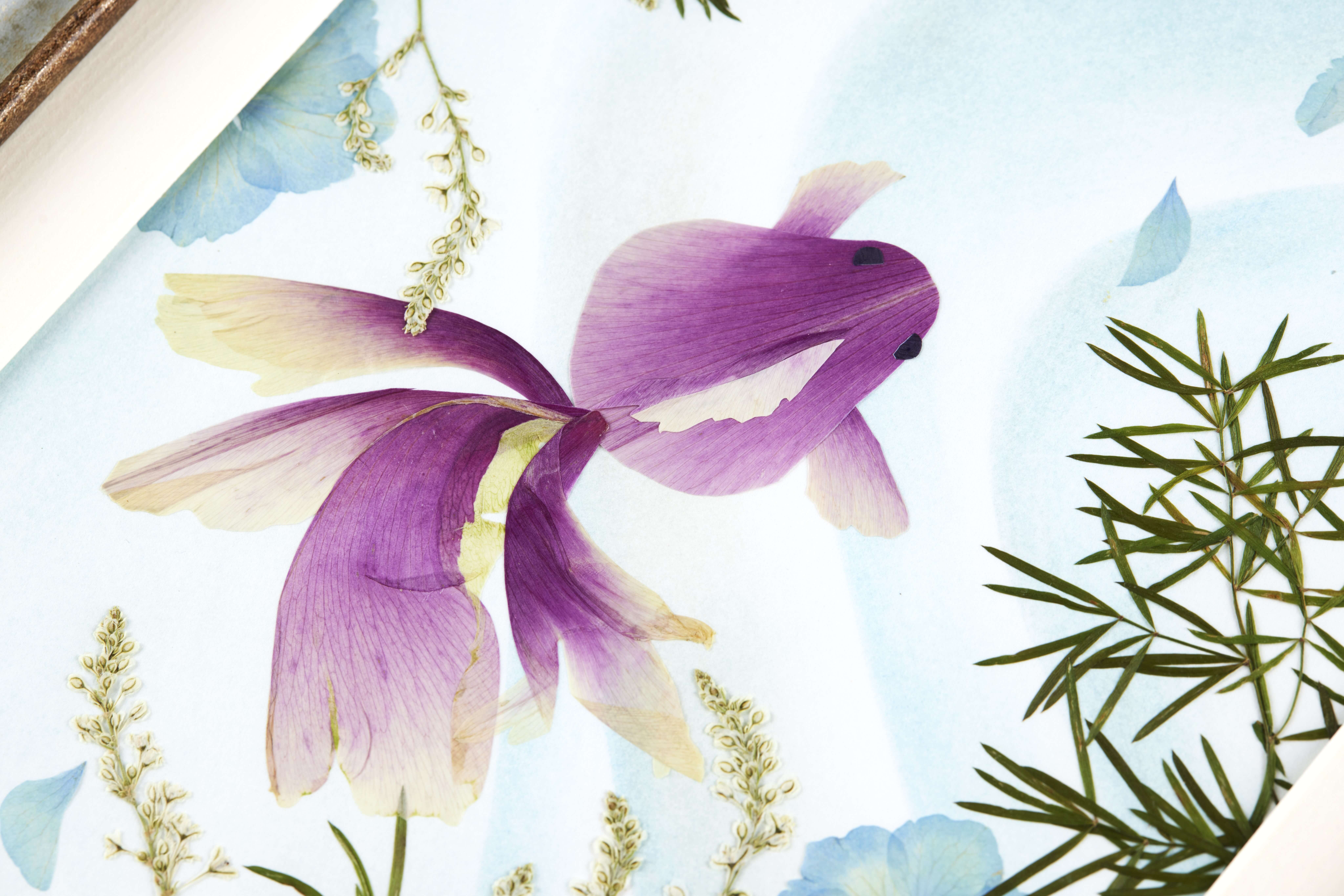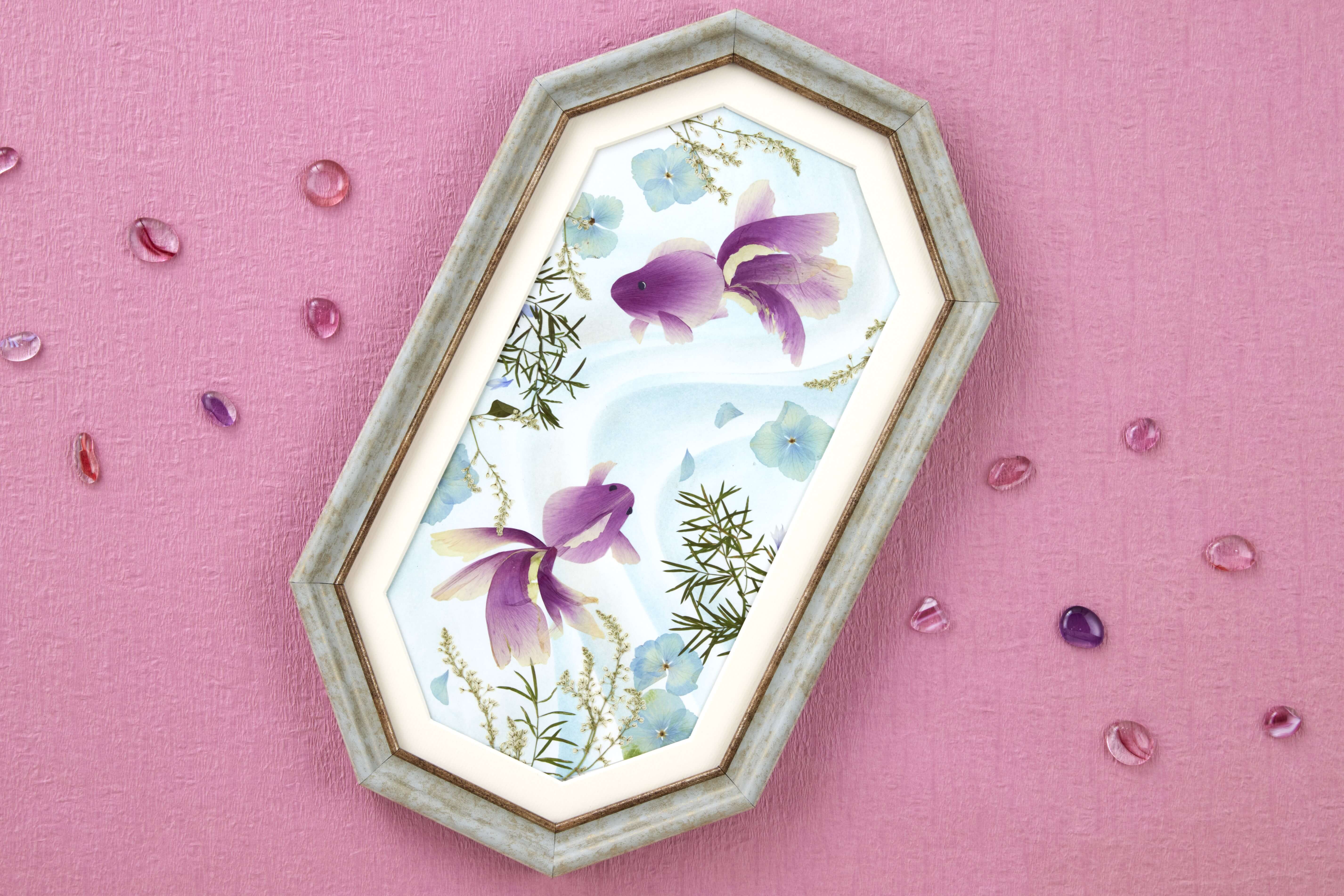 黒川千代の花びらとパステルで描く金魚図
