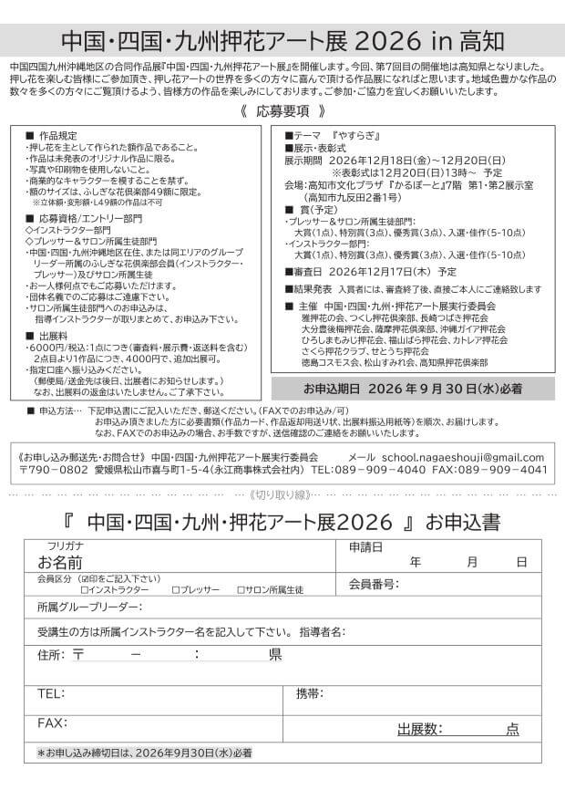 中国四国九州沖縄地区の合同作品展『中国・四国・九州押花アート展』を開催します。